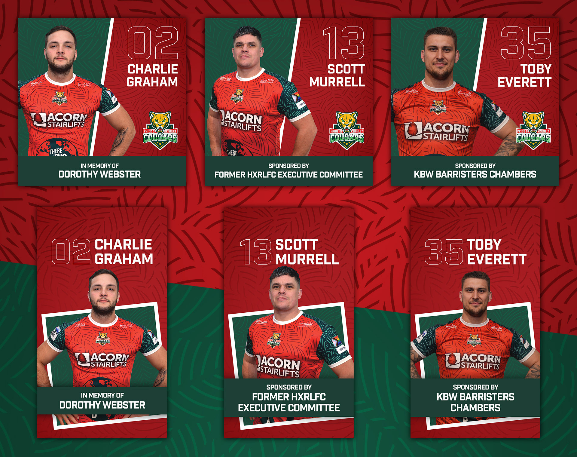 Once the visual concept was established, we developed a Key Visual to promote the launch of the new jerseys. This included mockups and imagery featuring the team captain, Jack Miller. From this Key Visual, we created a variety of materials to support Keighley Cougars' communications throughout the 2022 season.